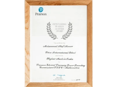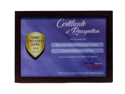 Certificate of Excellence was awarded to Olive International School for being an Innovative Educational Institution on Jan 9th 2021.